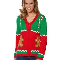 Spirit Halloween Adult Gingerbread Ugly Christmas Sweater Cardigan