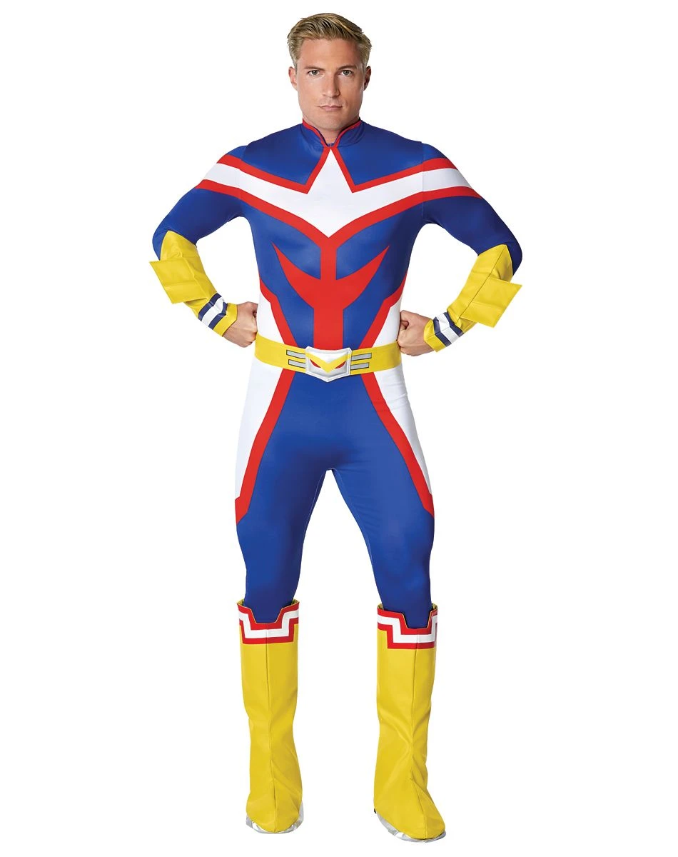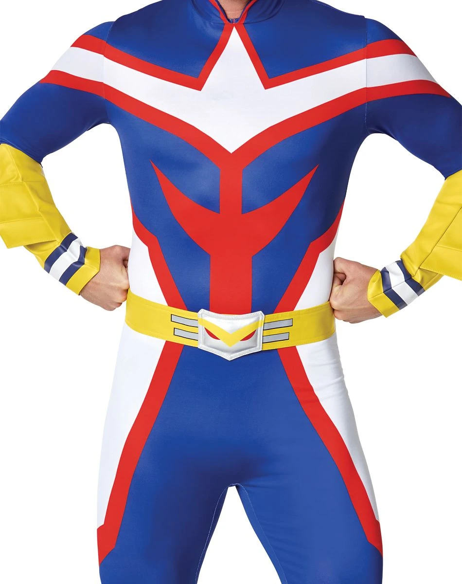 Step into the powerful shoes of All Might when you wear this officially licensed My Hero Academia costume! This authentic costume features a red, white, and blue jumpsuit inspired by All Might’s signature ensemble. A yellow waist belt matches arm guards and boot covers, preparing you to confidently run full-speed into the action!