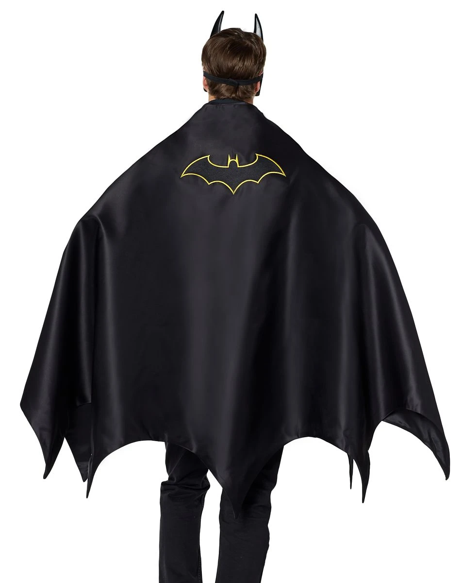 Be one of the world’s greatest superheroes in this officially licensed Batman Deluxe Cape! This signature black cape features a contrasting Batman logo and graphic detailing inside. To top it off, it’s styled with intricate edging along bottom of the cape that’s similar to the cape that Batwing wears! The Caped Crusader is ready to protect Gotham with this deluxe cape and serve justice to all criminals!