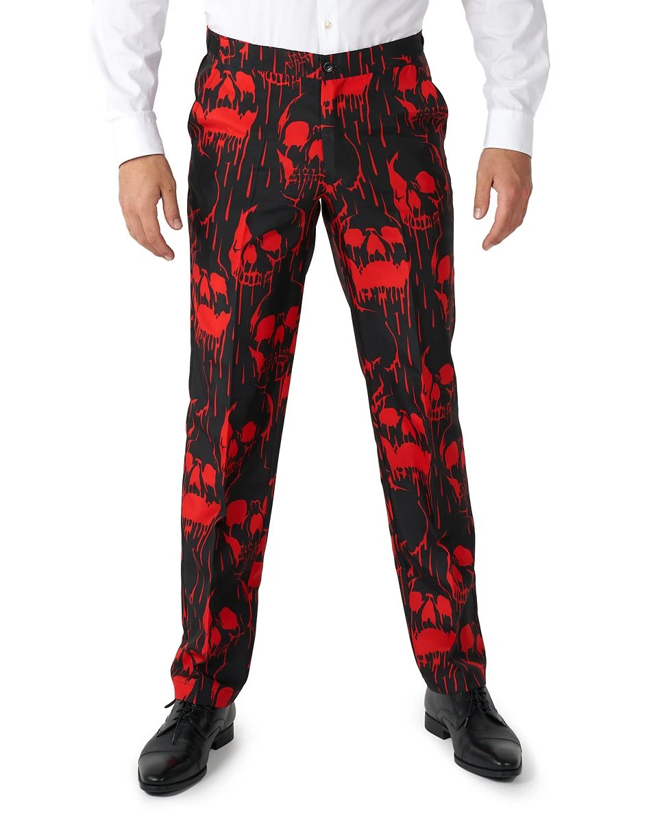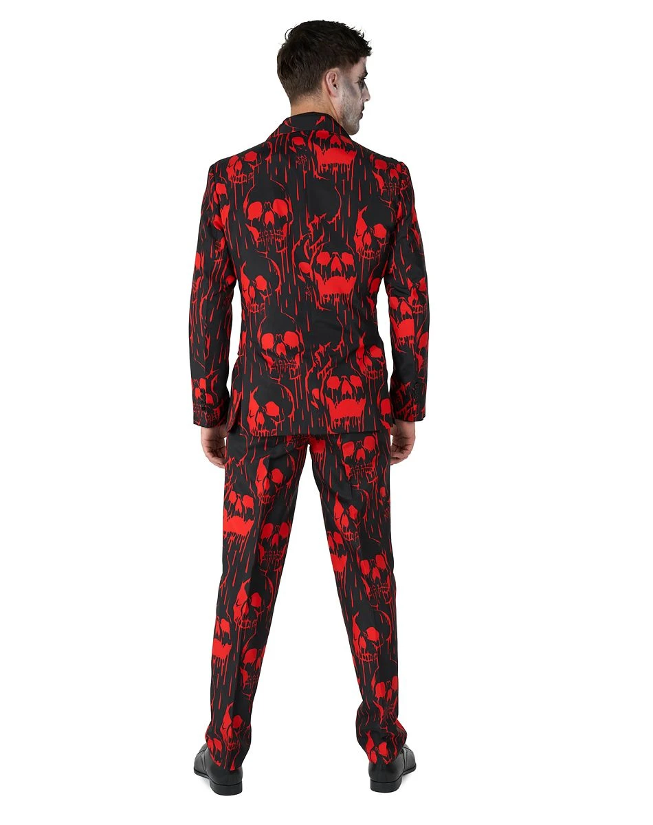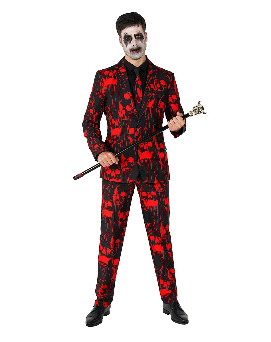 You’ll turn heads in this bloody skull suit! This scary ensemble includes a black jacket, dress pants, and a tie adorned with striking red skull graphics. Look no further for the perfect “put-together and petrifying” style.