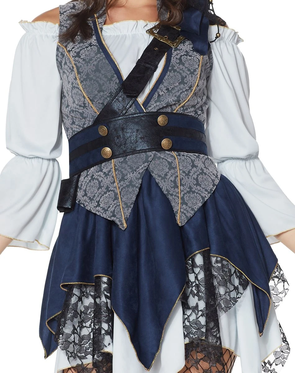 From Our Exclusive Signature Collection. Way out in the uncharted waters of the world’s high seas comes the Castaway Beauty Pirate Costume. Before you know it, you’ll be a plundering, treasure hunting, dangerous pirate with looks to spare. This costume comes in extraordinary detail from the hat and headband, all the way down to your weapon. All of this detail will have you looking like you just dug up buried treasure wherever you go. Plunder the high seas in this costume from our signature collection.
