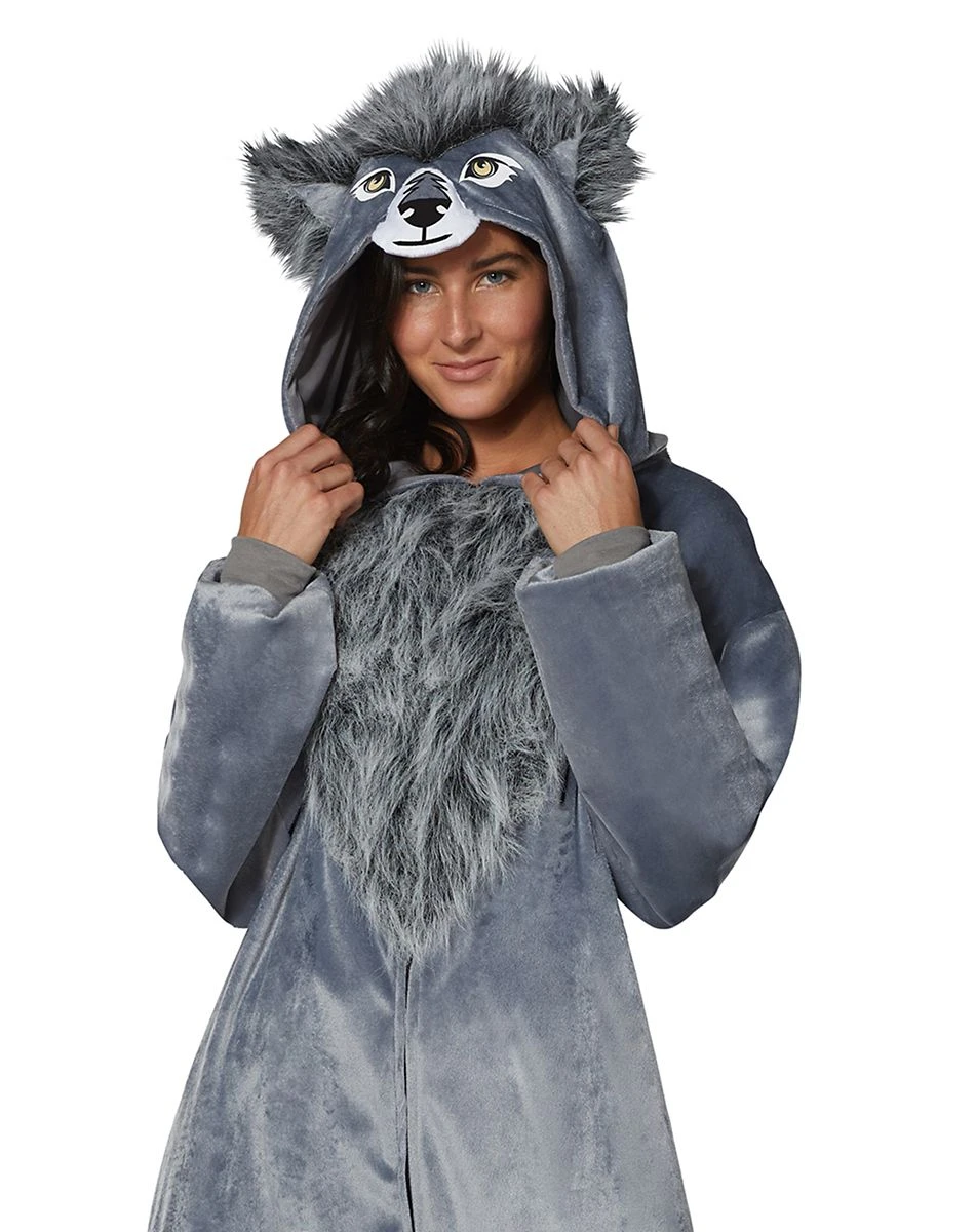 Get ready to howl at the moon when you dress up in this adult wolf union suit costume. When you transform yourself into this friendly looking wolf in a costume complete with faux fur, you’ll instantly transform yourself into the perfect party animal.
