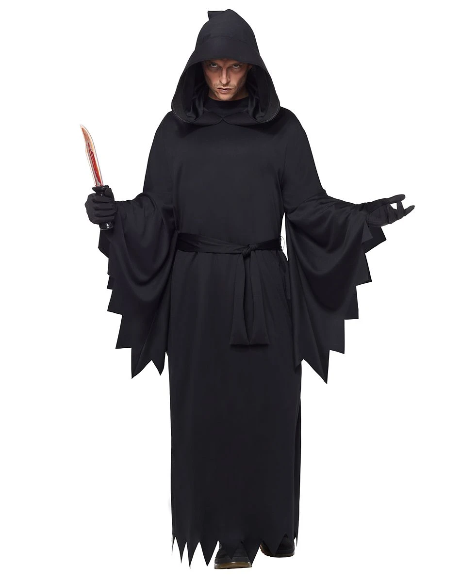 Complete your mysterious Halloween night look with this Hooded Black Robe Costume! Whether you’re suiting up as the Grim Reaper, a dark wizard, or a horror movie slasher, this long, black robe will perfectly complete any mysterious costume.