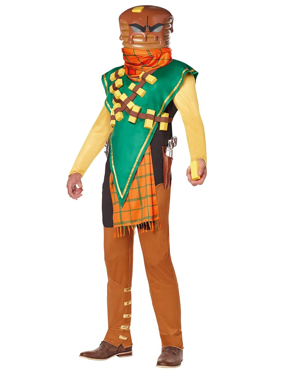 Prepare for the ultimate battle this Halloween when you wear this officially licensed Mancake costume! This costume includes Mancake’s signature jumpsuit, poncho, and butter sticks, as well as a pair of gloves, a bandana, a double holster, and an epic half mask. Bring this fan-favorite Fortnite Outfit to life!