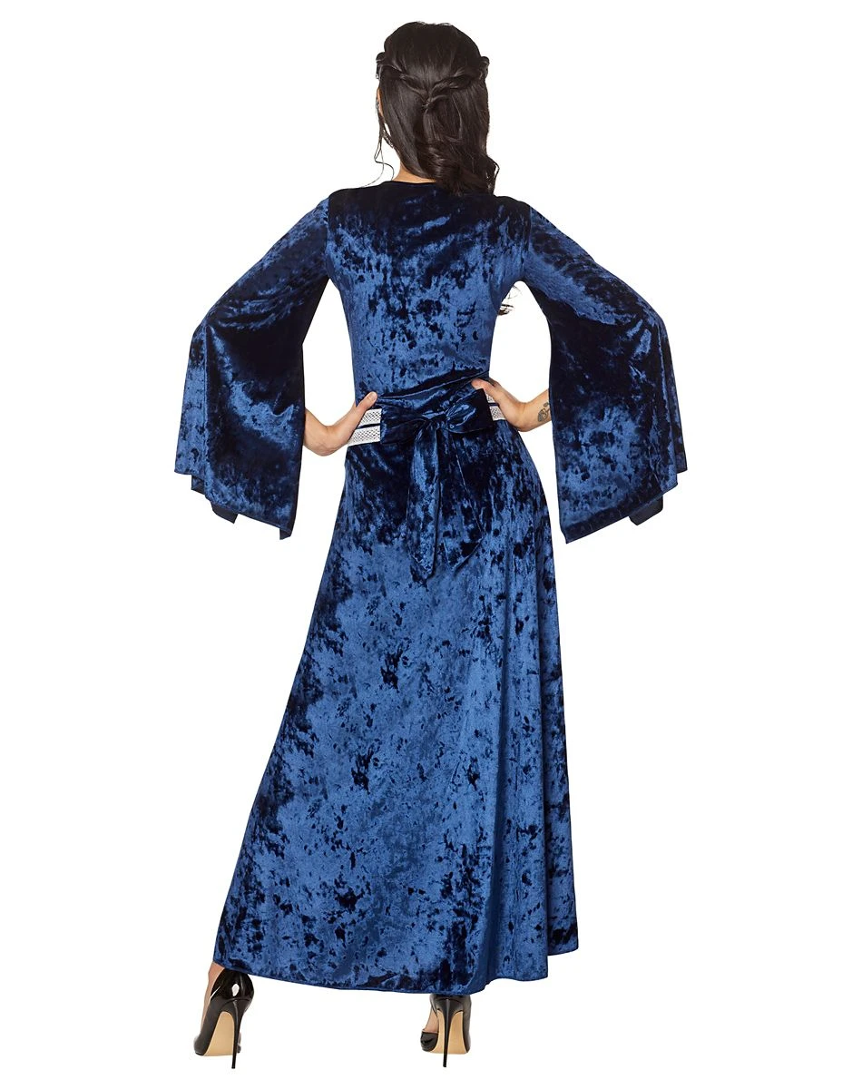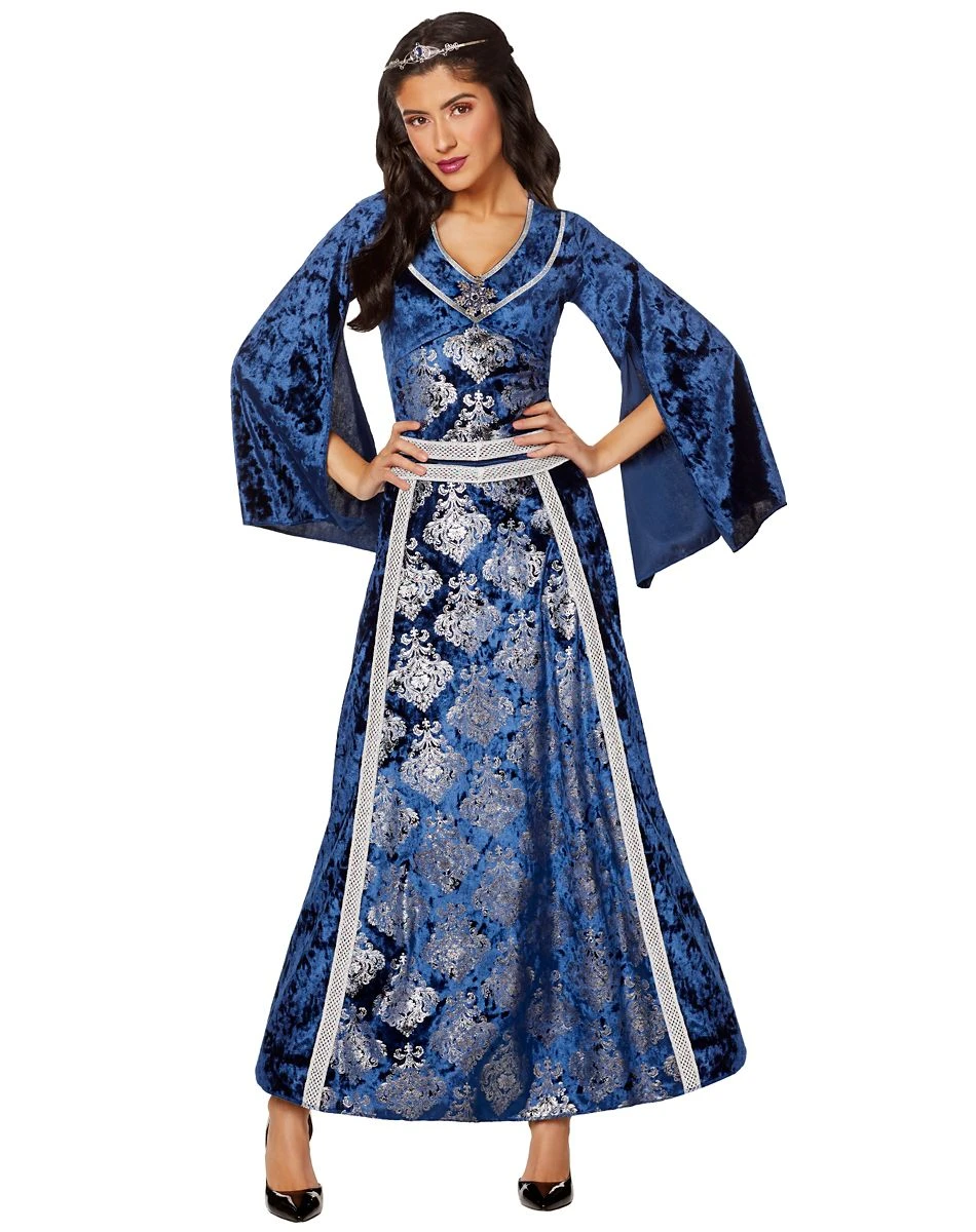 Gracefully assume royal status in this Adult Medieval Fair Lady Costume! This beautifully ornate dress is adorned in blue and metallic silver, colors reserved for royalty in medieval times. Captivate the peasants in this dazzling gown, crown, and belt!
