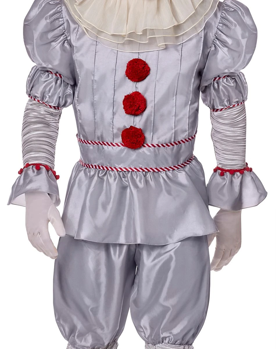 You’ll be craving the sweet taste of fear this Halloween when you show up to the costume party wearing this officially licensed Deluxe Pennywise Costume. This deluxe costume includes a full Pennywise outfit that looks just like it does in the film including a gray pleated shirt, ruffled clown pants, a collar, and a terrifying latex mask complete with fiery red hair and wicked smile. You’ll look like you’ve come straight out of the Derry sewers in this high-quality Pennywise costume.