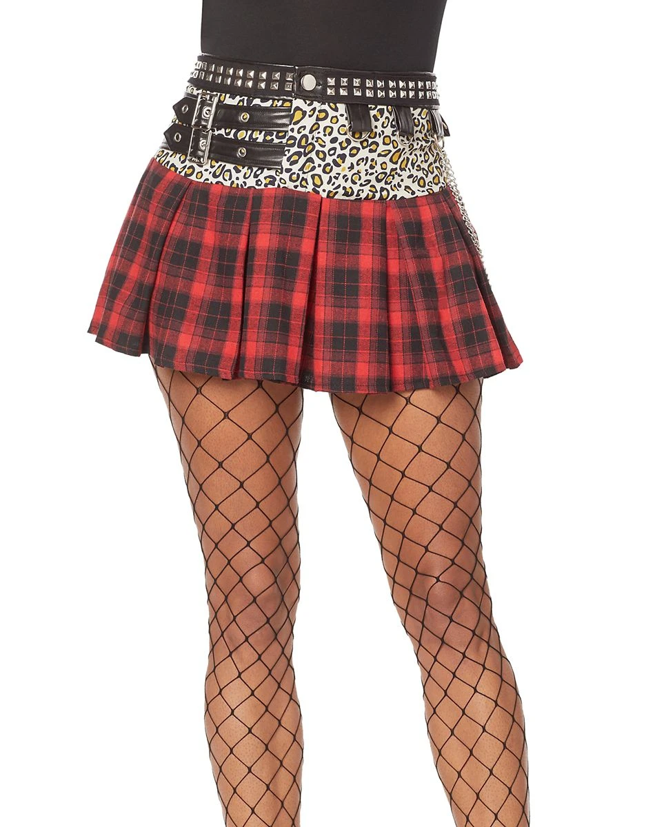 Get ready to rock in this edgy Adult Punk Skirt! With perfectly punk accents like plaid, leopard, buckles, and chains, this skirt is all you need to pull together a rebellious look. Pair this with your favorite band t shirt for an effortlessly cool style!