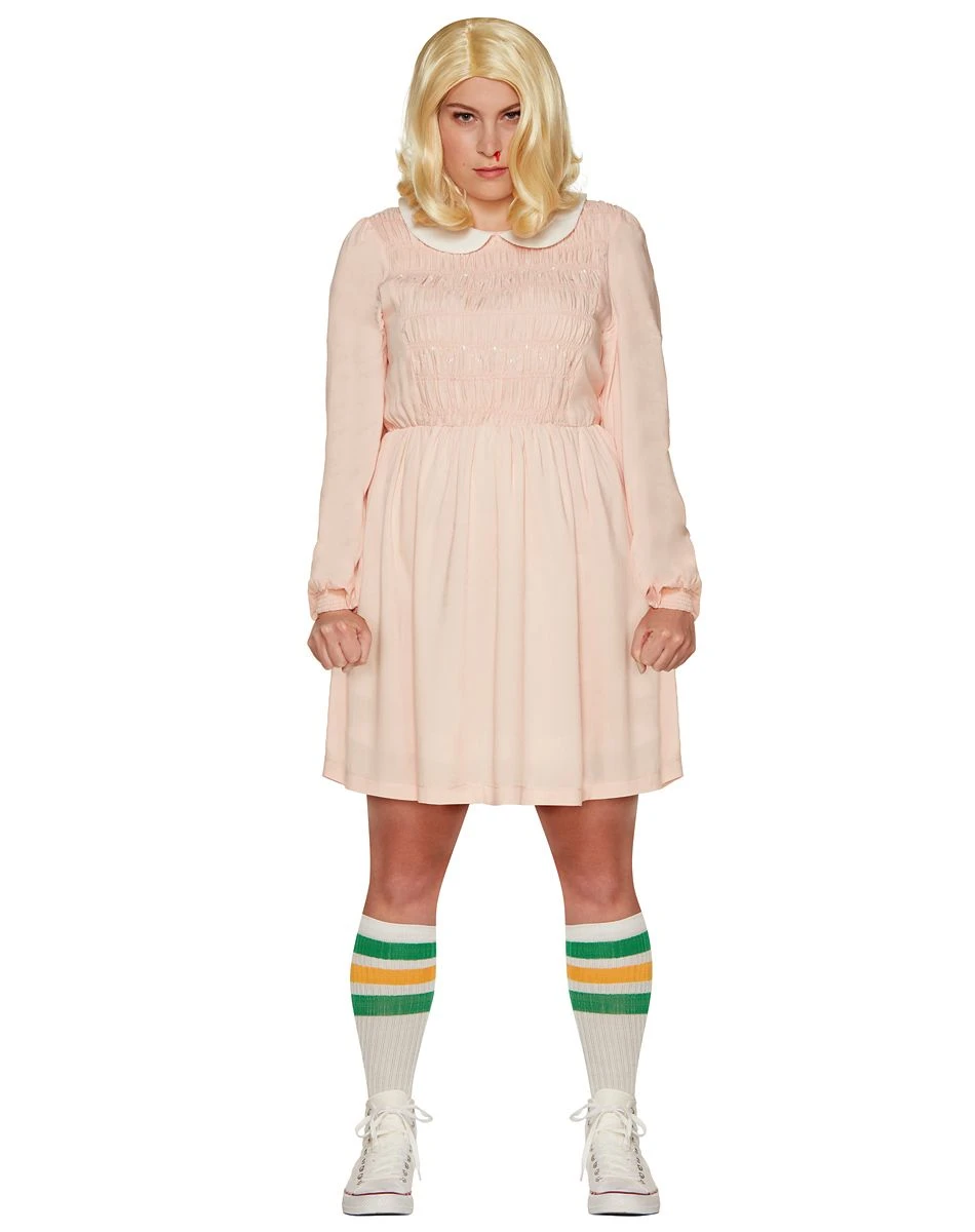 No worries, you’ll be able to escape crazy scientists this Halloween as Eleven! The pink, long sleeved dress with ruffled top and white collar makes it easier than ever to crush people’s brains, help the boys find their friend and obsess over waffles. So put on those psychokinetic abilities and represent the best character from Stranger Things.