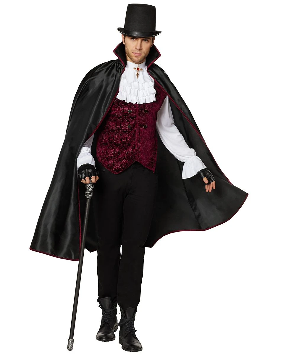 Thirsty for some blood? This adult vampire costume will get you ready for nightfall. The velvet shirt features a paisley design that will have you looking sophisticated during your hunt for dinner. The circular flounce sleeves and tiered collar detail are the perfect addition to this flawless costume. The included goldtone broach will let everyone know that you’re an authentic vampire. Complete your look with the velvet-trimmed included cape and you’ll be ready for the next Halloween party!