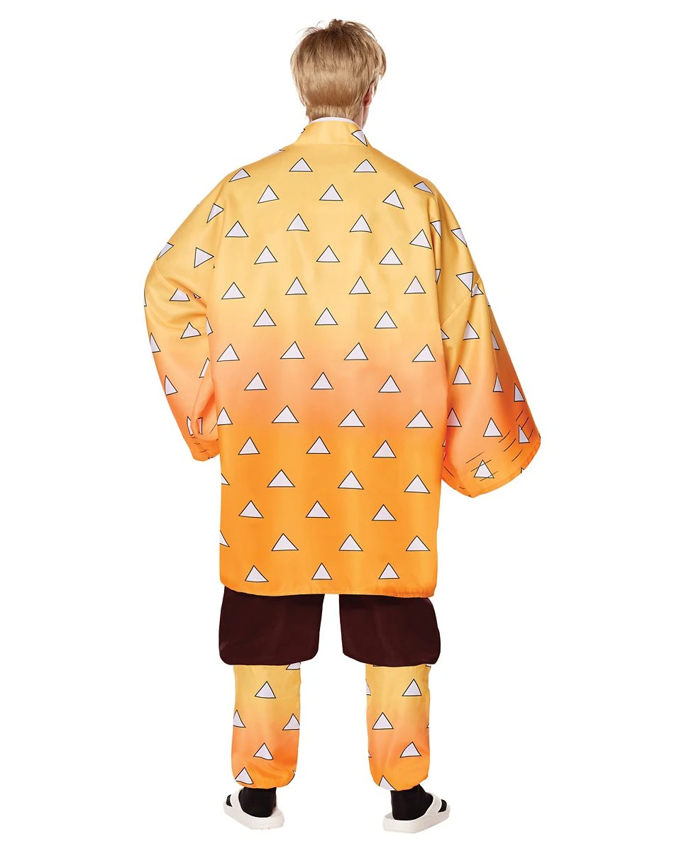 Show off your fandom for Demon Slayer and send demons running with this Adult Zenitsu Costume! This officially licensed fit includes a black and white jumpsuit, an orange kimono, matching shin wraps, and a belt. Once you slip into this epic ensemble, everyone will know which anime is your absolute favorite!