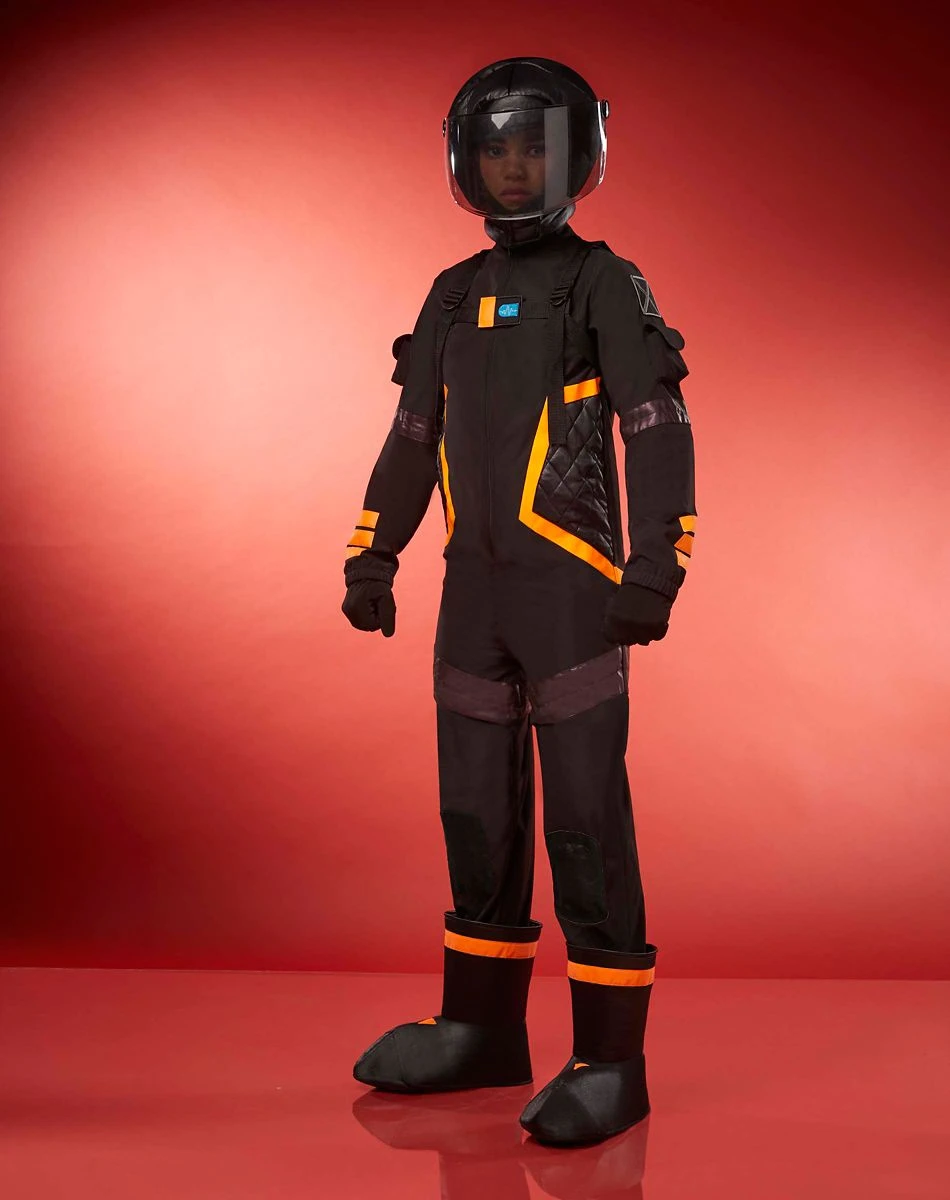 Strap up your helmet and get ready to rocket ride this Halloween with our officially licensed Boys Fortnite Dark Voyager Costume. With this must-have costume you’ll be ready to bring home the win for the squad. Featuring the Dark Voyager’s iconic jumpsuit with reflective orange trim, gloves, and his iconic space helmet, this costume comes with everything you need to become this legendary space explorer.