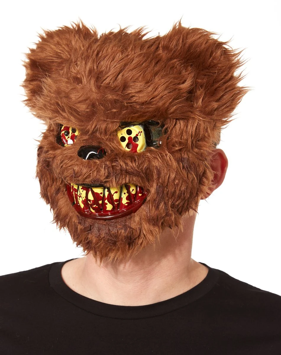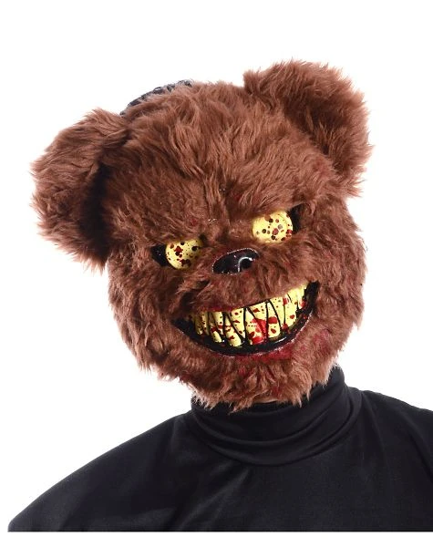 No one will want to get too close to you when you wear the Brown Scary Teddy Bear Mask, This creepy teddy bear face features blood-covered teeth and yellow eyes.