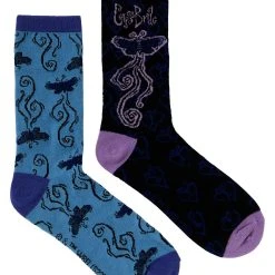 Unveil the newest addition to your wardrobe when you slip on these Corpse Bride Crew Socks! This set includes two pairs of officially licensed socks featuring enchanting blue and purple detailing. Show your love for this classic film with these colorful, comfy socks!
