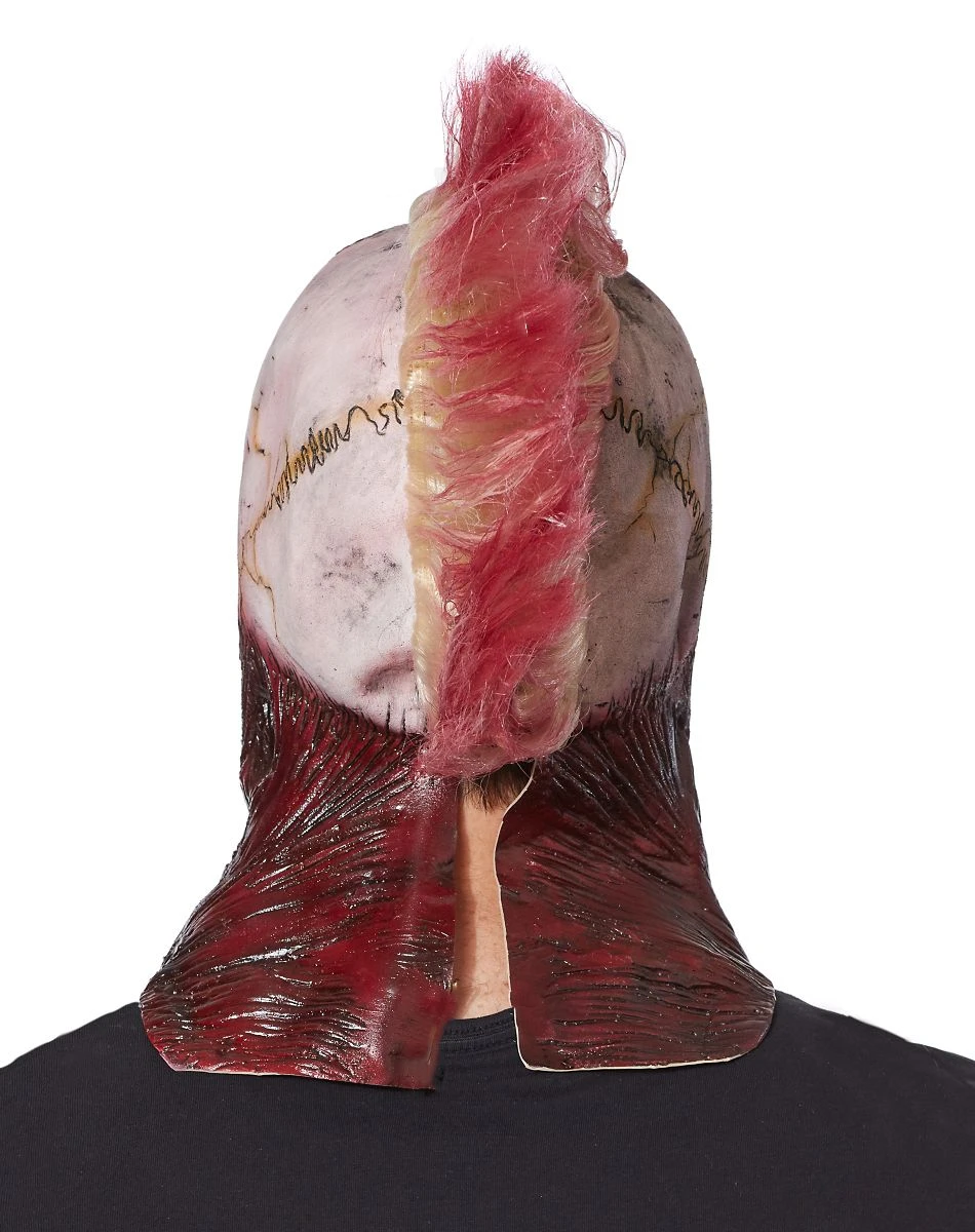 From the Tate Steinsiek Collection. Bring some edge to your Halloween with this punk skull mask! The bloody and bold mask features a bright red mowhawk and exposed muscle details that will leave everyone running scared!