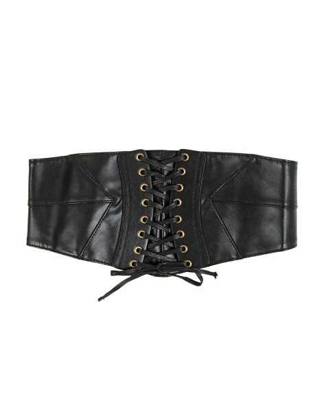 Sass up your look with the Deluxe Waist Cincher Belt. This black, lace-up belt cinches in any flowing dress or tunic for a more seductive look.