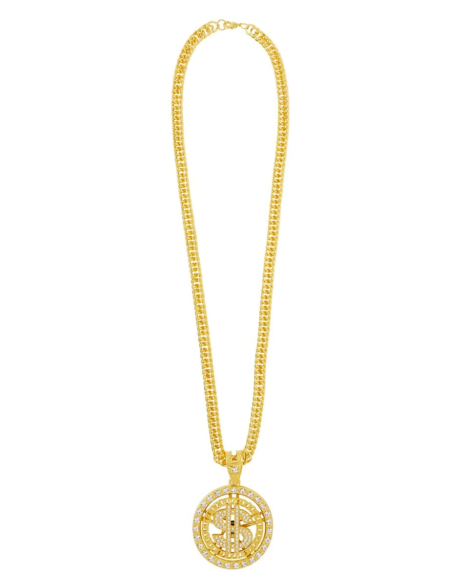 Make your pimp costume stand out when you put on this goldtone dollar sign chain necklace! You’ll like the perfect big spender with your big bling.