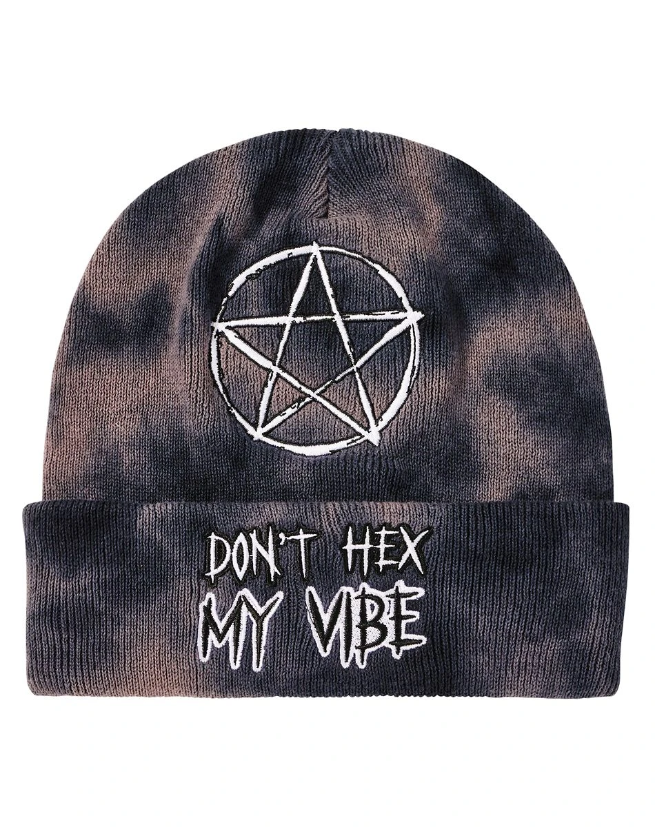 Whether you’re looking to complete your Halloween costume or you just want to add a stylish new hat to your collection, this beanie is a must-have. Featuring an image of a pentagram and the words “Don’t Hex My Vibe,” this hat will perfectly match your look.