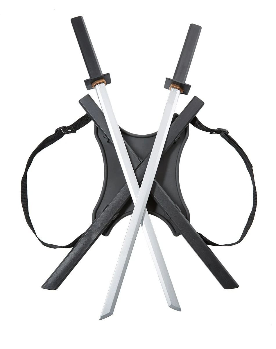 Get ready for battle and look awesome while doing it with these swords! Featuring swords that rest on your back in an X style formation, these swords are sure to be the perfect weapon choice for almost any costume.
