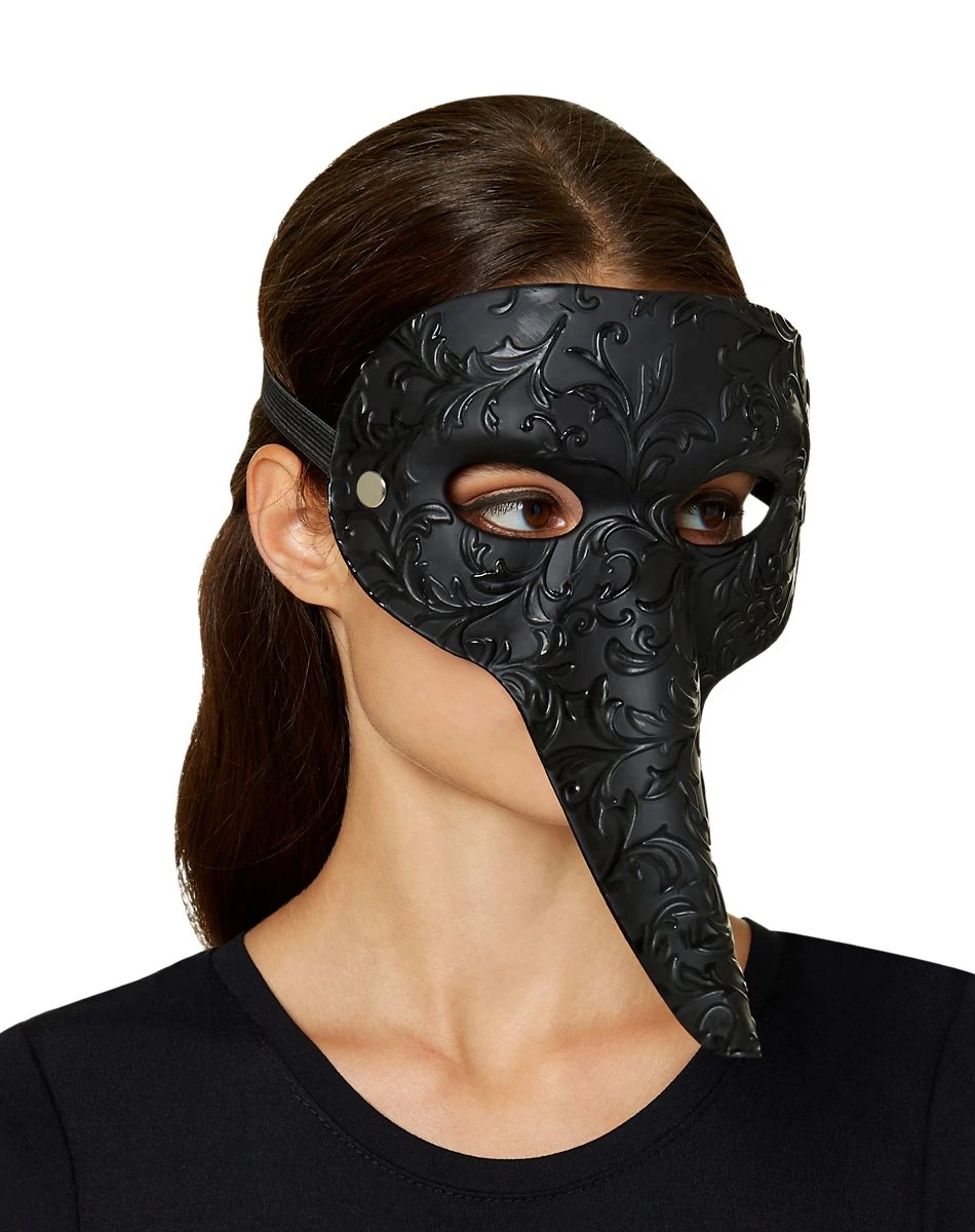 Celebrate this Halloween while staying safe from the plague when you have on this female plague doctor mask. This black mask features a long beak and a paisley design, and is perfect for wearing at any masquerade party this Halloween.