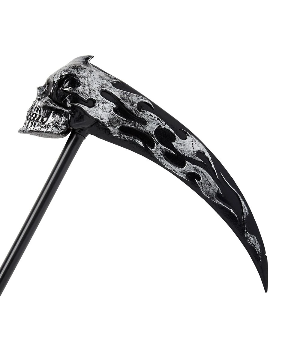 Give your scary costume the perfect accessory with this Flame Skeleton Scythe! This tall black scythe features a spooky skeleton head with a flame trailing behind it. Just raise this scythe in the air and and you’ll invoke fear in everyone who sees it.