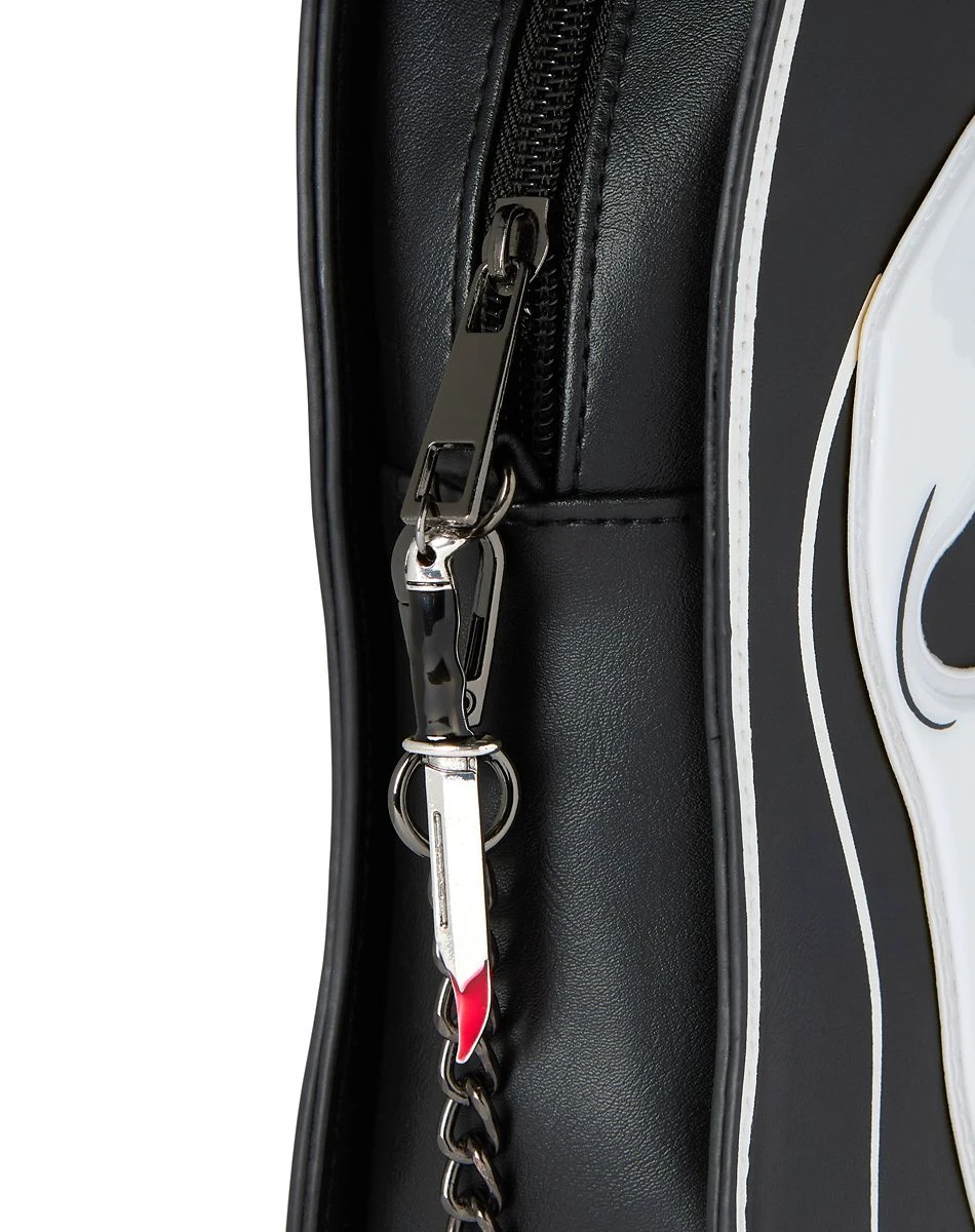 Bring your horror fandom with you wherever you go with this official Ghost Face ® crossbody bag! This stylish and convenient bag lets you easily carry all your essential gear on Halloween or any time.