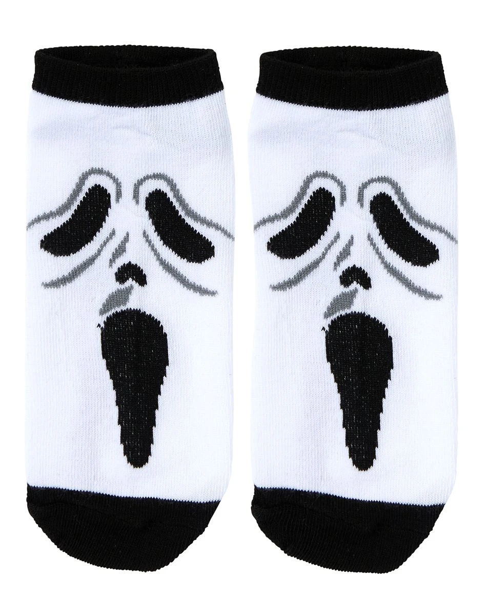 Add some slasher style to your wardrobe with these Ghost Face No Show Socks! This officially licensed 5-pack of socks, which features assorted styles of your favorite horror icon, Ghost Face, will add some positively petrifying style to your day.