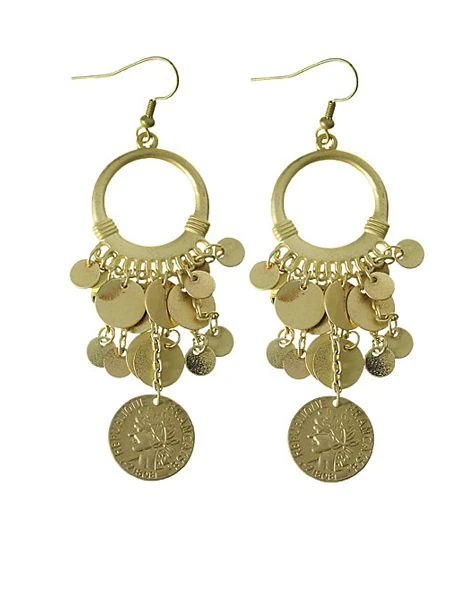 These Goldtone Coin Greek Goddess Earrings dance in the light and capture your every move. Central “coin” is richly luxurious and oh so sexy!
