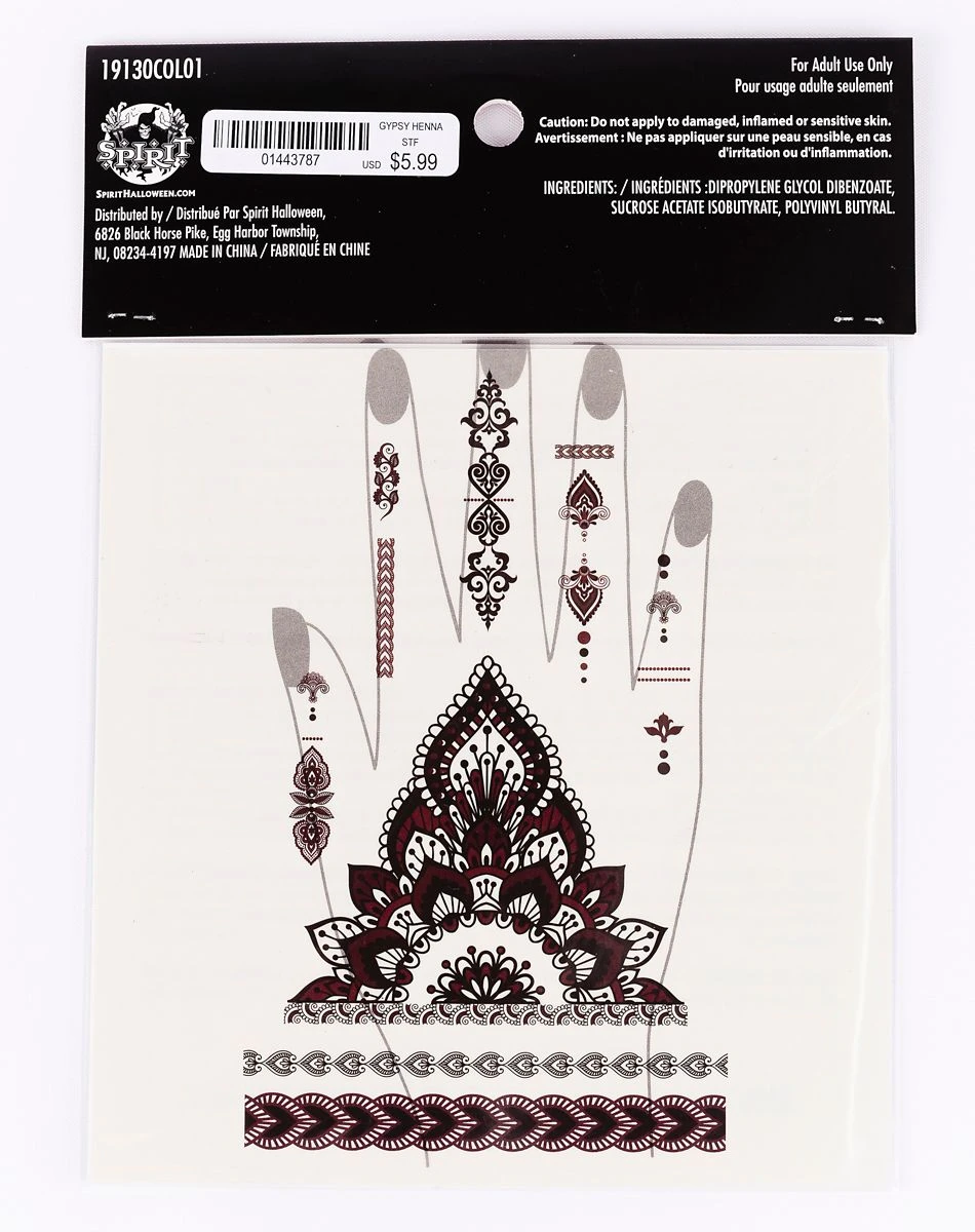 Add a little more to your gyspy costume with these temporary hand tattoos! These tattoos are water-transfered and will make you look like the real deal!
