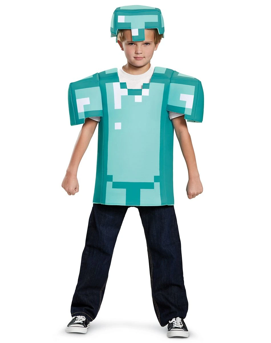 Pretend you’re playing your favorite video game in real life. You’ll be ready to build up and defend your world against any enemies in this officially licensed Minecraft Kids Armor Shirt Set.