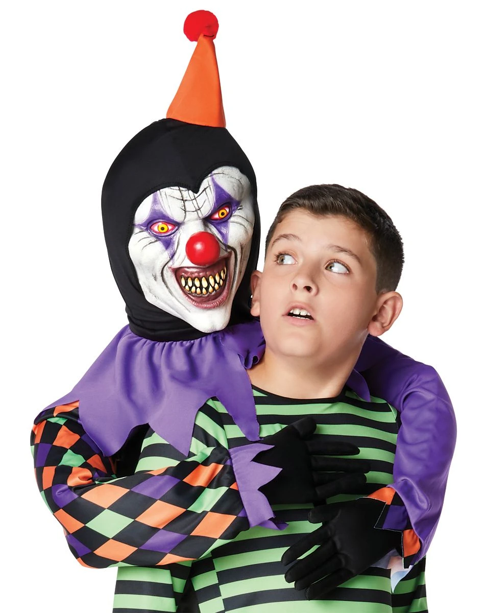 Have you ever been captured by a clown? Bring a terrifying scene to life with this clown capture costume! This creepy costume creates the illusion that you’re being carried away by a crazed, masked clown. This clown’s bright diamond jumpsuit contrasts with your striped jumpsuit to create a jaw-dropping visual!