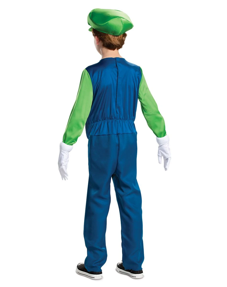 Assist your brother in rescuing the princess on Halloween when you dress in this officially licensed Mario Bros. Luigi Deluxe Boys Costume. The green and blue character jumpsuit comes complete with a matching green hat, detachable inflatable belly, gloves and a faux mustache.