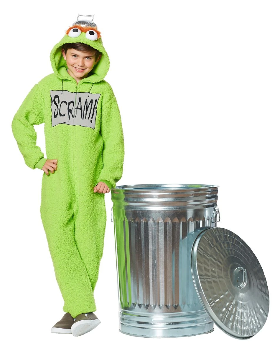 Scram! Become everyone’s favorite green grouch with this officially licensed costume! You’ll be nice and cozy in your trash can with this soft, one-piece ensemble, featuring a green fur body stylized with Oscar’s “Scram!” sign, as well as a hood topped with Oscar’s peering eyes and signature orange eyebrows. Make your way to Sesame Street and join the rest of the gang… even though Oscar just wants to be left alone!