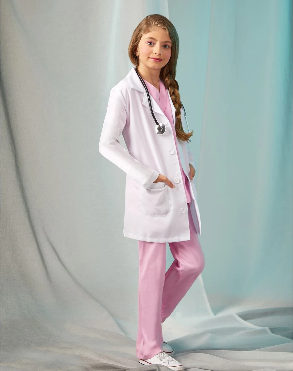 For career day at school or Halloween, this Doctor Girls Costume is perfect for your child to dress up and put Doctor before their name! This costume features pink “scrub” pants and shirt along with a white lab coat. Let your little doctor be comfortable and efficient in this adorable costume!