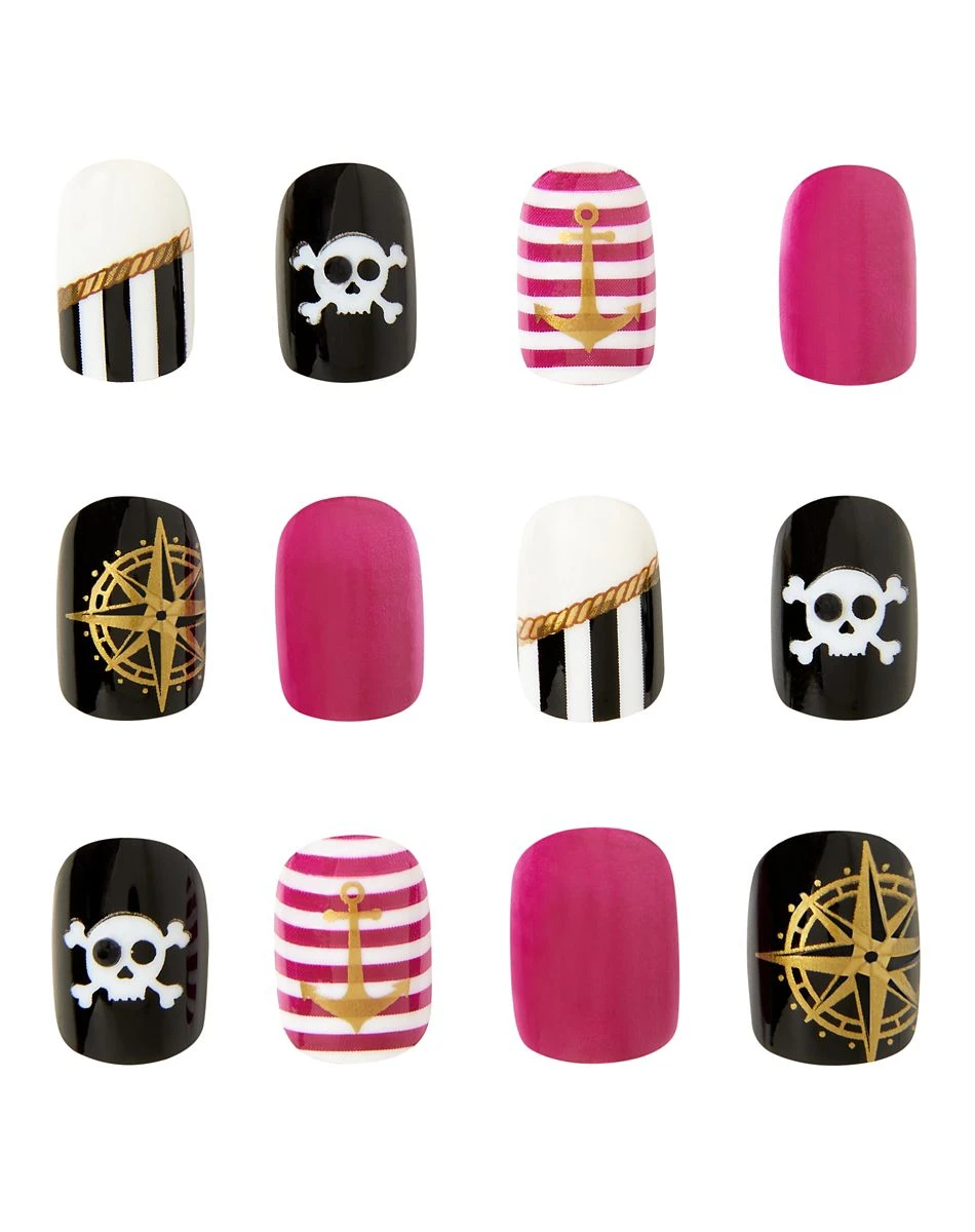 Ahoy, matey! Complete your pirate costume with these incredible press on nails! Featuring 12 different styles, these fake fingernails will have you ready to sail the seven seas.