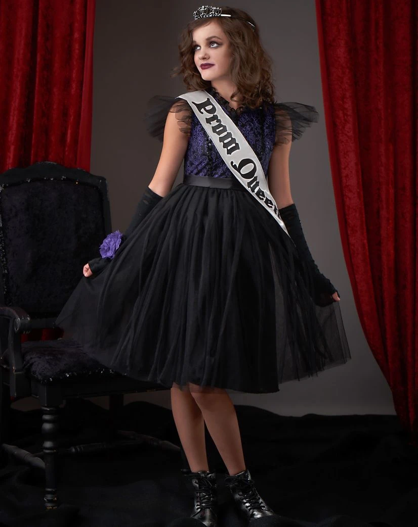 From Our Exclusive Signature Collection. Prom night is taking a dark twist this year. Become the prom queen of Halloween in this high quality dress that will make you the queen of the night. Walk around the neighborhood or party greeting your subjects all through the night.