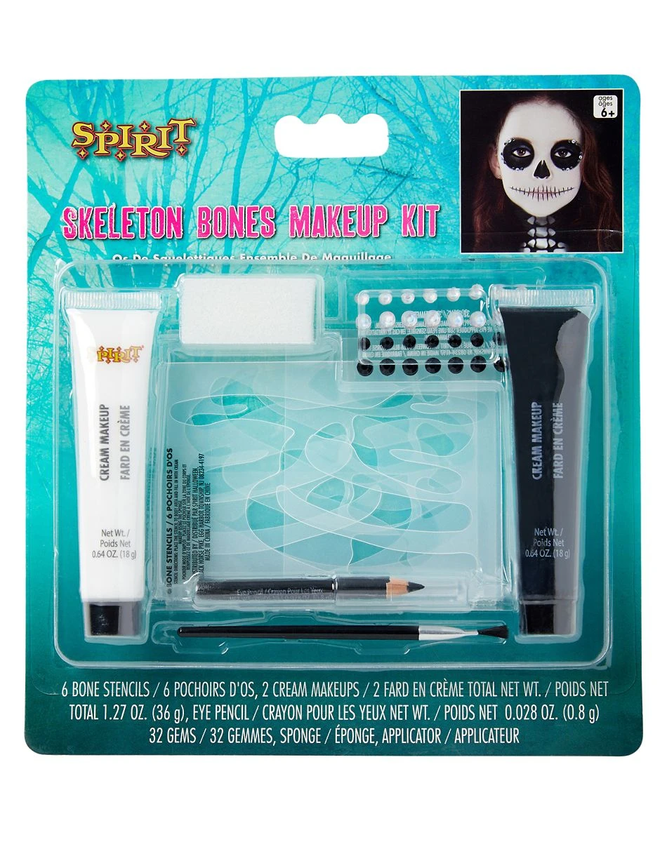 Create the perfect skeleton look with this spooky makeup kit. Coming complete with 6 bone stencils, 2 cream makeups, 1 eye pencil, 32 gem stones, 1 sponge, and 1 brush applicator, you’ll be bad to the bone in no time at all!