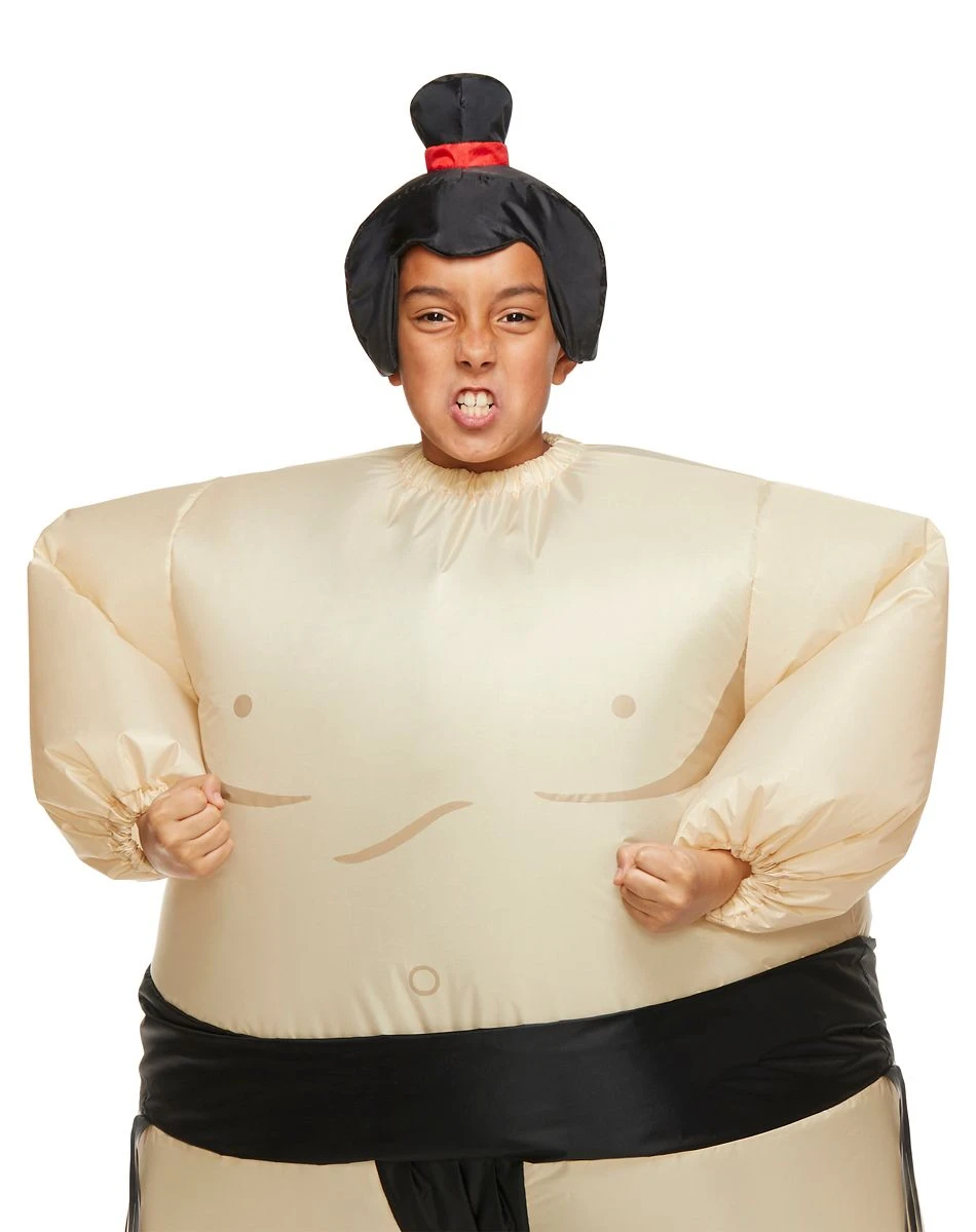 Transform your child into a superstrong, Sumo Wrestler in seconds! This funny kids costume comes with blow-up sumo suit and signature sumo hair hat, perfect for any kid looking for a “ton” of fun this Halloween.