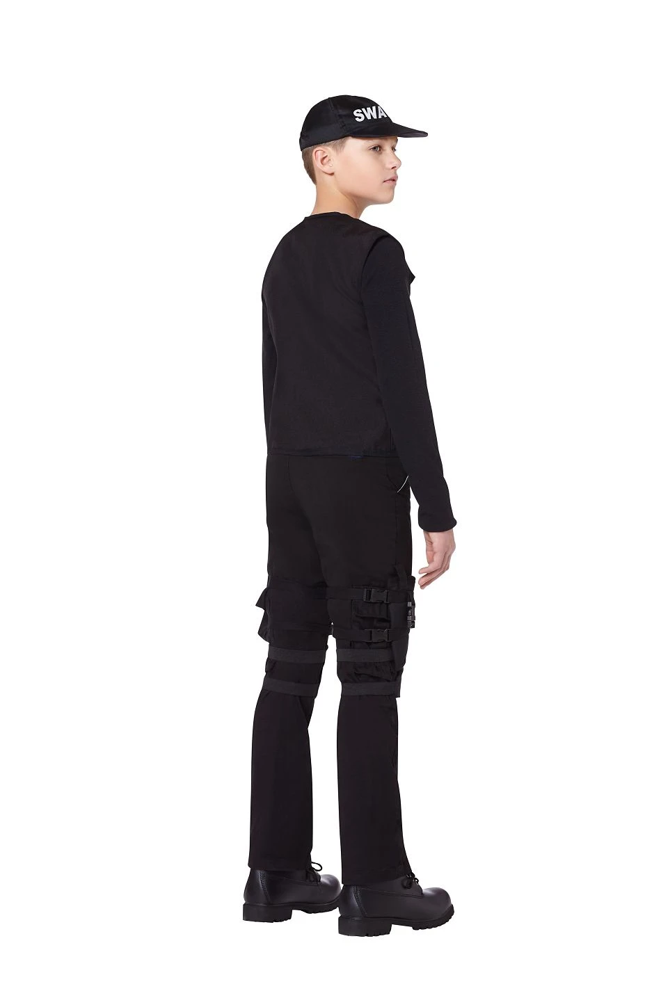 Take command on Halloween when you use this SWAT boys costume kit! It has everything you need to take down all the bad guys, including a black vest, hat,knee pads, holster and pouch. Be prepared for chaos!