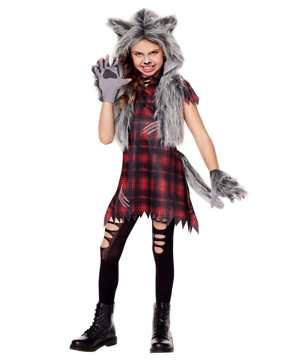 You’ll be a fierce and fabulous werewolf in this costume! This werewolf costume includes a tunic with an edgy, shredded hem, a faux fur hooded vest with attached werewolf ears, a fluffy tail, and a pair of fingerless gloves. Are you ready for a full moon?