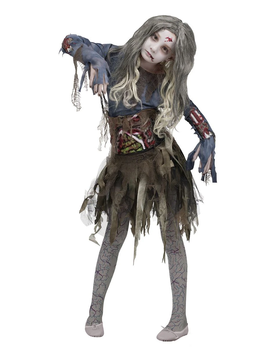 Watch out for the flesh eating monster! The Zombie Child Girls Costume will have her hungry for more than just candy this Halloween. Features a tattered, dirty dress with lifelike spilling guts waist cinch.