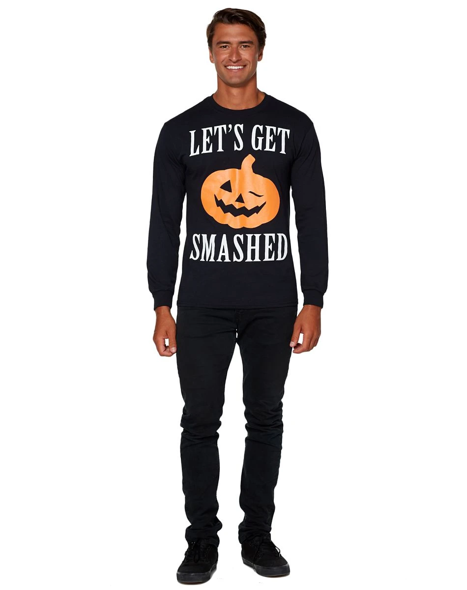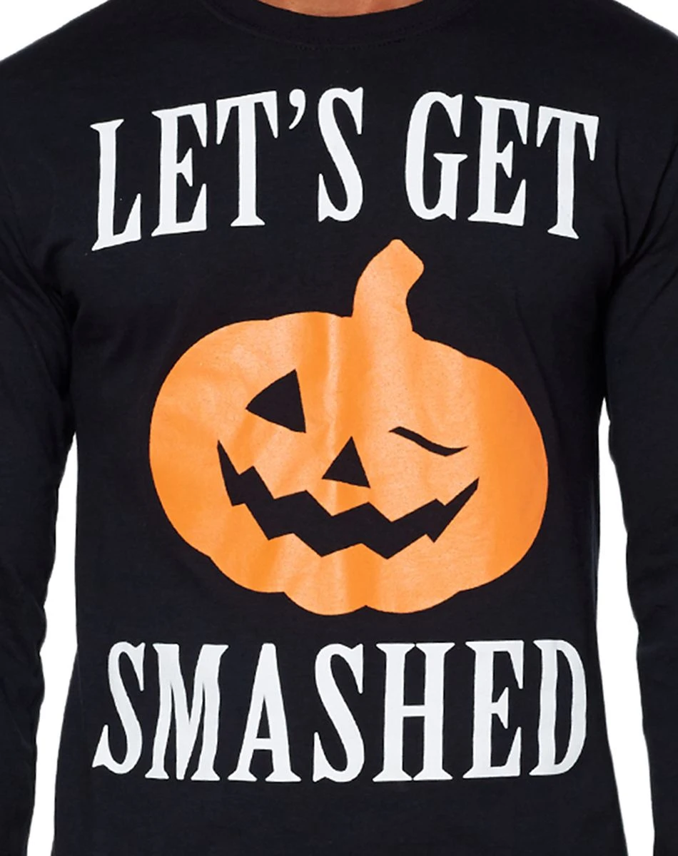 Who needs a costume? Let everyone know why you really came to the Halloween party when you wear this hilarious “Let’s Get Smashed” long sleeve t shirt! This long-sleeved shirt is absolutely perfect for any fun and casual Halloween celebration.