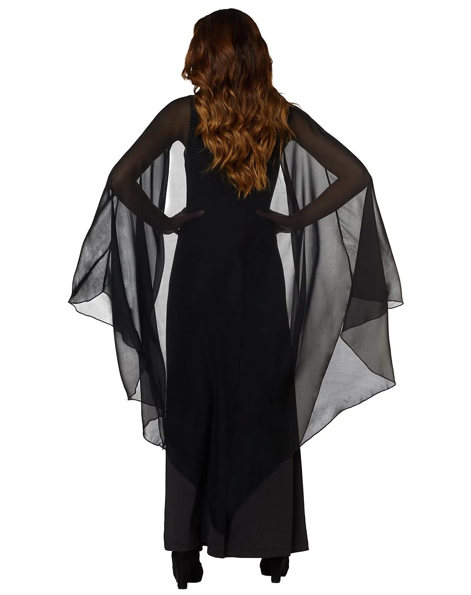 Create your own Gothic look with this cape dress! This gorgeous sleeveless dress features an attached sheer cape that will have you looking like royalty. This dress is the perfect base for your very own witch or vampire costume.