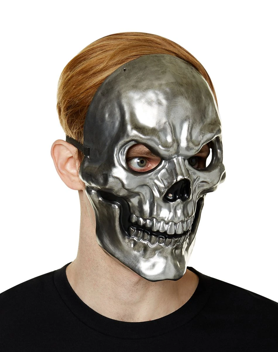You’ll look prepared to deliver an awesome scare this Halloween once you put on this Silver Metallic Skull Half Mask. With this skull mask on you’ll have the start to an super cool skeleton costume and ready to collect plenty of candy this Halloween.