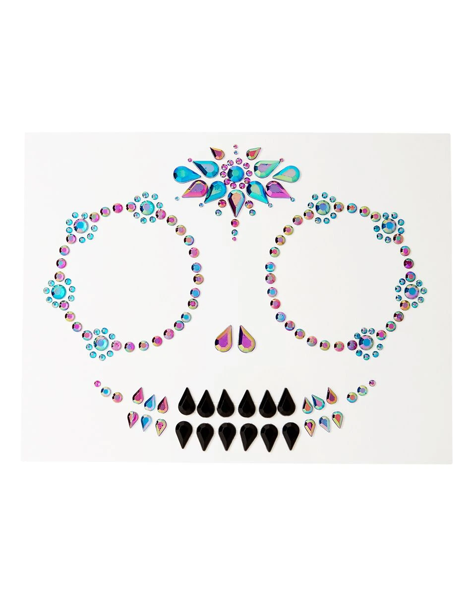 You’ll look just like a skeleton princess this Halloween when you accessorize with these Skeleton Gem Face Decals. These facial gems are sure to enhance any skeleton themed costume and will have you looking perfect for Halloween or the Day of the Dead!