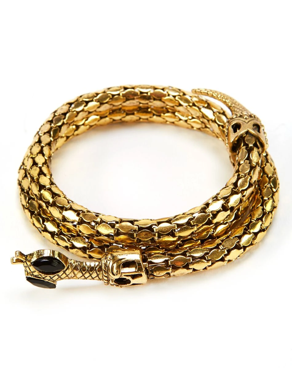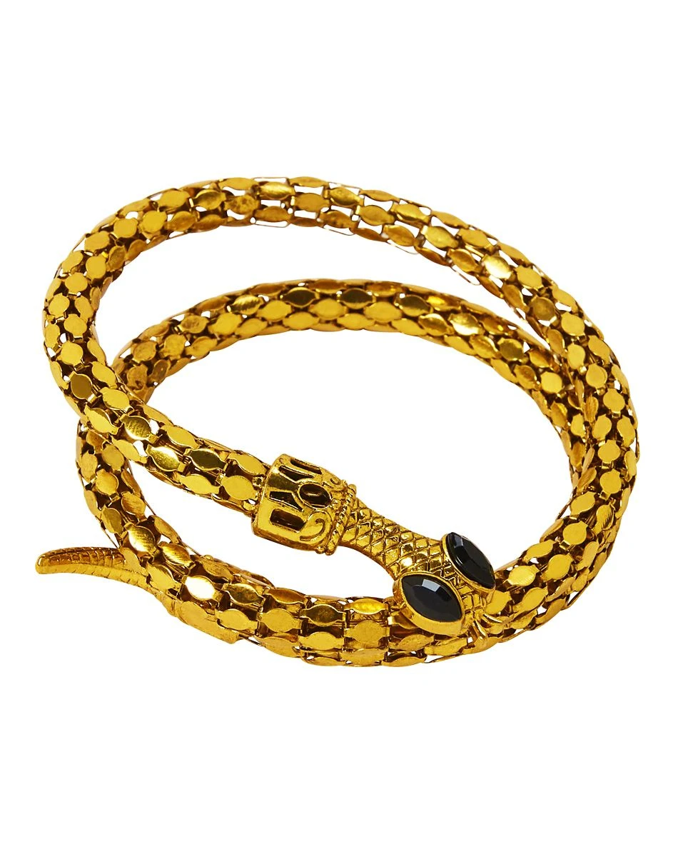 Show everyone that you can enchant all snakes by wearing this Snake Cuff! The cuff features a goldtone snake with black gem eyes. Perfect accent to any goddess or Medusa costume!