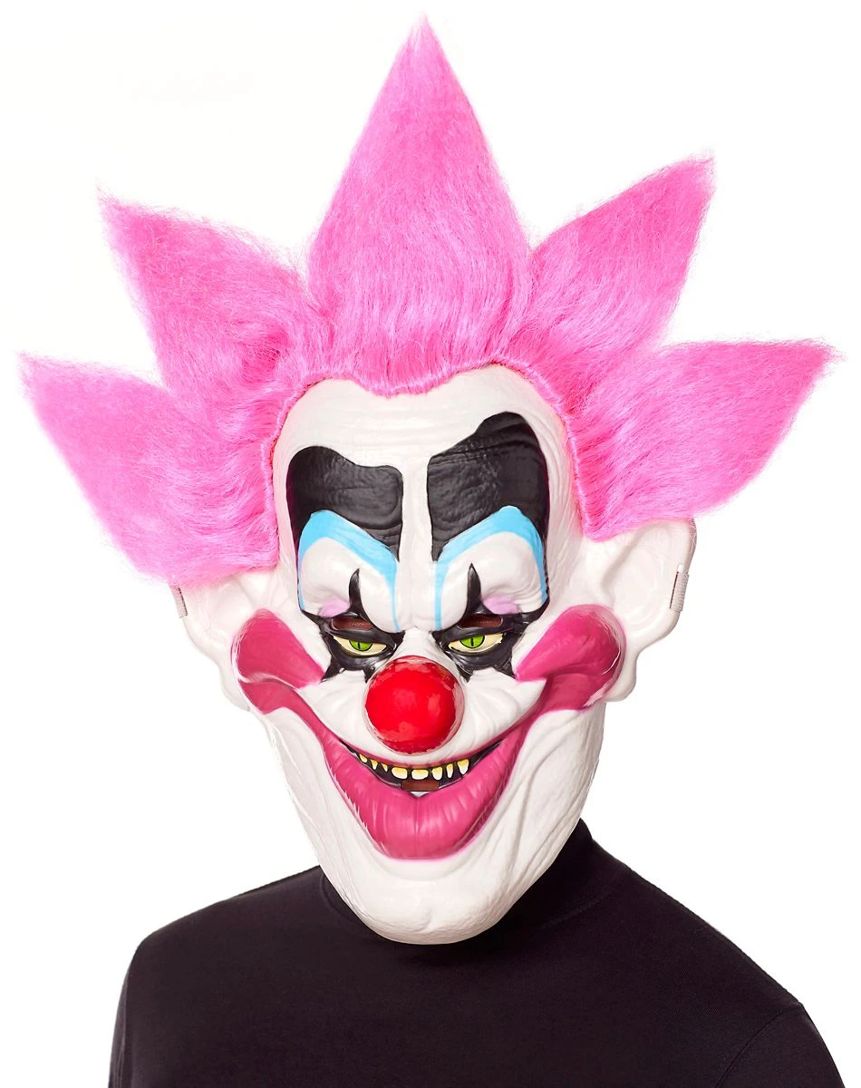 Embrace a chilling and thrilling look in this officially licensed Killer Klowns from Outer Space Spikey mask! This spooky Spikey mask features neon pink hair, chalk white skin, and a bright red nose. A wide elastic band keeps this mask securely in place while you clown around.