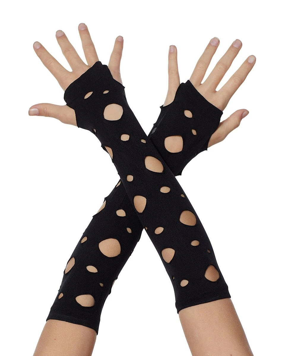Add some grungy style to your costume this Halloween when you accessorize with these tattered arm warmers. This pair of gloves will look great with any punk or goth themed outfit and is perfect if black is your favorite color!