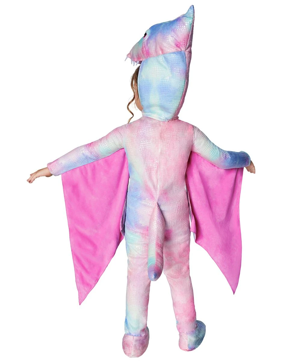 Have a roaring good time in this pterodactyl cutie costume! This toddler pterodactyl costume features dreamy pastel hues and a shimmering pink belly. When you lift your arms, this stunning suit reveals beautiful wings! A long, dramatic tail and a plush hood complete this dynamic dino ensemble.