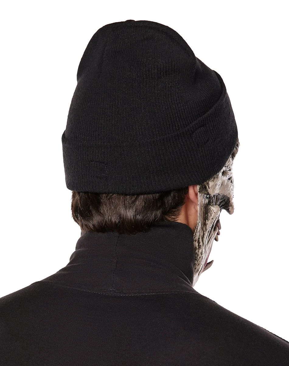 Upgrade your Halloween look as the coolest ghoul around with this terrifyingly awesome half mask! This petrifying mask features a design that reacts under ultraviolet light, so you’re sure to stand out! Complete with gruesome detail and topped with a beanie, this mask will take your costume to new terrifying heights.