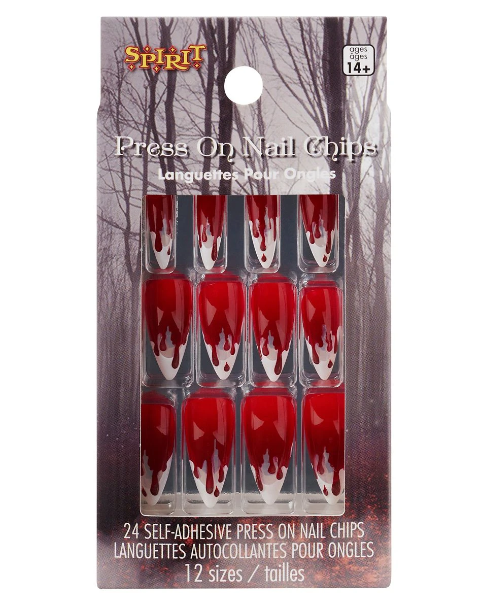 Hoping to complete your horrifying Halloween costume? These vampire blood press on nails are exactly what you need. Turn nightmares into reality this spooky szn!